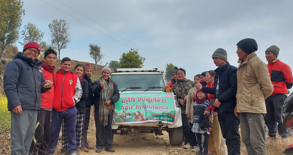 पहिलो दिन वडा नं. ११ खार्मीस्थित ‘सोती बहुउद्देश्यीय कृषक समूह’ले उत्पादन गरेका कृषि उपज निःशुल्क ढुवानी गरिएको छ । शुभम् फाउण्डेशनले निःशुल्क उपलब्ध गराएको बोलेरो पिकअप भ्यानमार्फत कृषि एम्बुलेन्स सेवा दिन शुरु गरिएको नगरपालिकाका कृषि शाखा प्रमुख तेजप्रकाश जैसीले जानकारी दिनुभएको छ ।