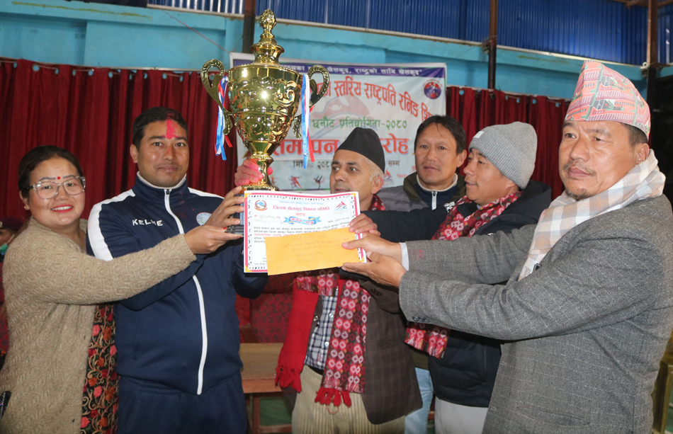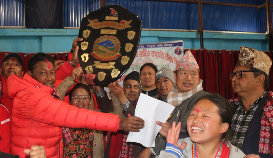 खोटाङ, १८ फागुन । १४ औँ राष्ट्रपति रनिङ शिल्ड प्रतियोगिताको उपाधि दिक्तेल रुपाकोट मझुवागढी नगरपालिकाले उचालेको छ । दिक्तेलस्थित माटीकोरे खेलमैदानमा शुक्रबार साँझ सम्पन्न जिल्लास्तरीय प्रतियोगितामा २५ स्वर्ण, दश रजत र छ कास्य पदकसहित दिक्तेल रुपाकोट मझुवागढी नगरपालिकाले उपाधि उचालेको हो ।