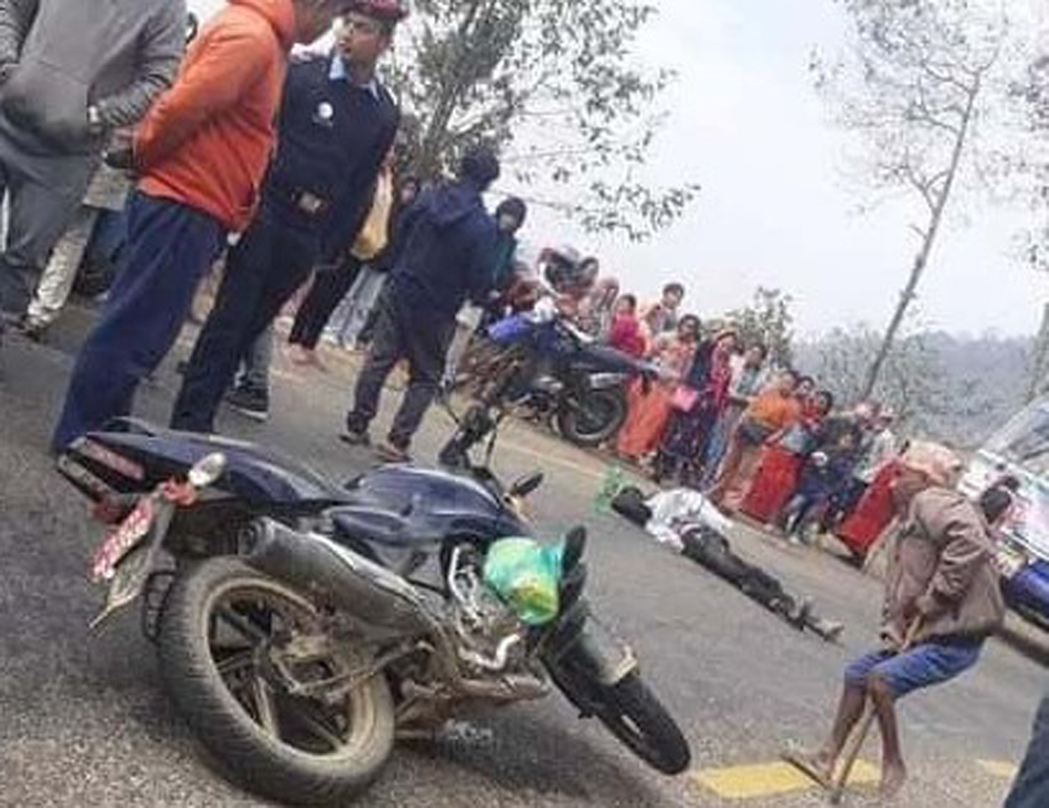 खोटाङ, २० फागुन । टिपरले मोटरसाइकललाई ठक्कर दिँदा मोटरसाइलमा सवार हलेसी तुवाचुङ नगरपालिका–६ मङ्गलटारस्थित देविटारका २५ वर्षीय टंकल राईको मृत्यु भएको छ । दिक्तेलबाट हलेसीतर्फ जाँदै गरेको बागमती प्रदेश ०१७–००६ ख २४०२ नम्बरको टिपरले स ९ प १२१२ नम्बरको मोटरसाइकललाई आइतबार अर्खौलेको कामीडाँडामा ठक्कर दिँदा टंकलको घटनास्थलमै मृत्यु भएको हो ।