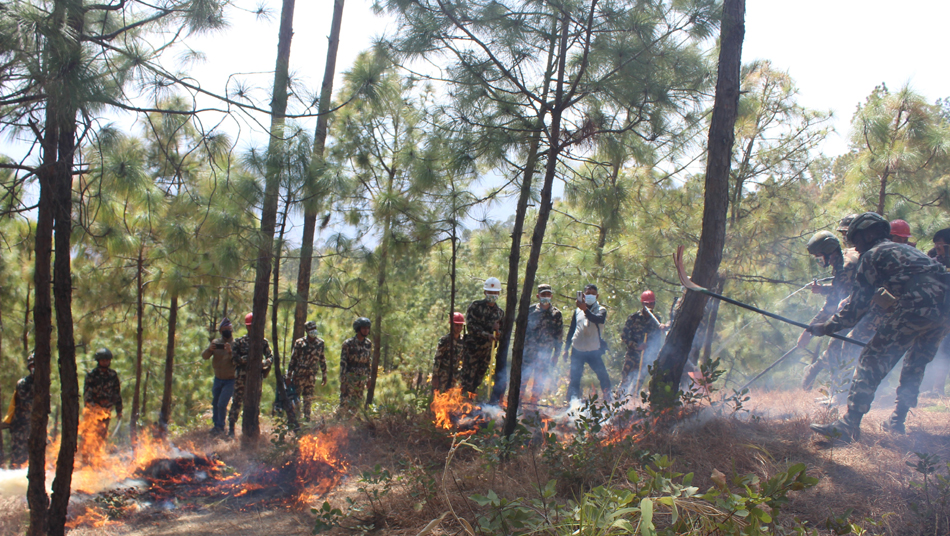 खोटाङ, ३ चैत । जिल्लास्थित तीनवटै सुरक्षा निकायका सुरक्षाकर्मीहरुले शनिबार आगलागी नियन्त्रण सम्बन्धी सचेतनामूलक डेमो (अभ्यास) प्रस्तुत गरेका छन् । डिभिजन वन कार्यालय खोटाङले शुरु गरेको अग्नी नियन्त्रण सम्बन्धी सप्ताह कार्यक्रम अन्तरगत सुरक्षाकर्मीहरुले दिक्तेल रुपाकोट मझुवागढी नगरपालिका–४ खाल्लेस्थित चन्द्रमान सामुदायिक वनमा संयुक्त डेमो प्रस्तुत गरेको हो ।