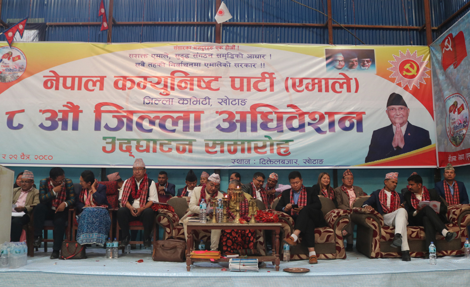 खोटाङ, २९ चैत । नेपाल कम्युनिष्ट पार्टी (एमाले) खोटाङमा नयाँ नेतृत्व चयनका लागि निर्वाचन प्रक्रिया शुरु भएको छ । चैत–२८ गते बुधबार औपचारिक रुपमा उद्घाटन गरिएको एमाले खोटाङको आठौँ जिल्ला अधिवेशन अन्तरगत निर्वाचन समिति गठन गरेर नयाँ नेतृत्व चयनका लागि निर्वाचन प्रक्रिया शुरु गरिएको हो ।