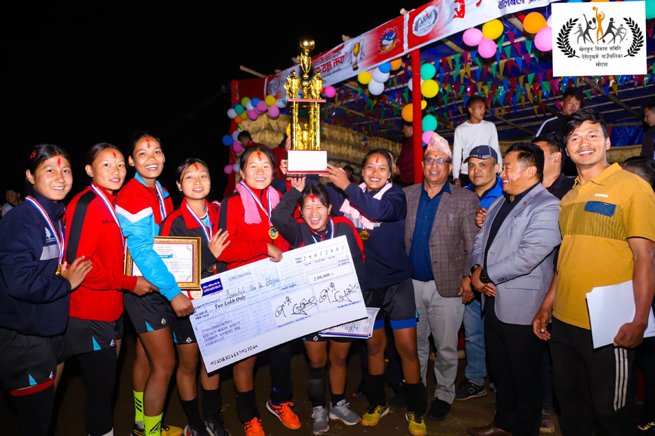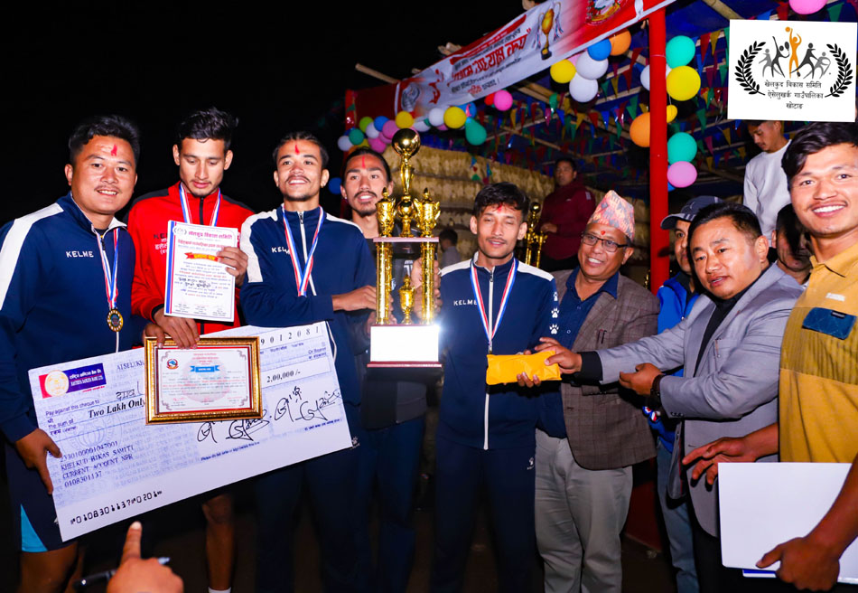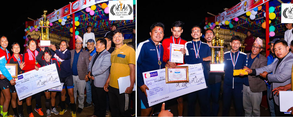 खोटाङ, ३० वैशाख । खेलकुद विकास समिति ऐसेलुखर्क गाउँपालिकाले आयोजना गरेको ‘ऐसेलुखर्क गाउँपालिका प्रथम अध्यक्ष कप’ महिला÷पुरुष अन्तरपालिकास्तरीय भलिबल प्रतियोगिताको महिलातर्फ आमचोक गाउँपालिका भोजपुर र पुरुषतर्फ दमक नगरपालिका झापाले उपाधि चुमेको छ । गाउँपालिकाको प्रायोजनमा सञ्चालन गरिएको महिला÷पुरुष अन्तरपालिकास्तरीय भलिबल प्रतियोगिताको आइतबार सम्पन्न फाइनल खेलमा केपिसगढी गाउँपालिका बाक्सिला खोटाङलाई हराँउदै आमचोक तथा षडानन्द नगरपालिका भोजपुरलाई हराउँदै दमकले भलिबल प्रतियोगिताको उपाधि चुमेको हो ।