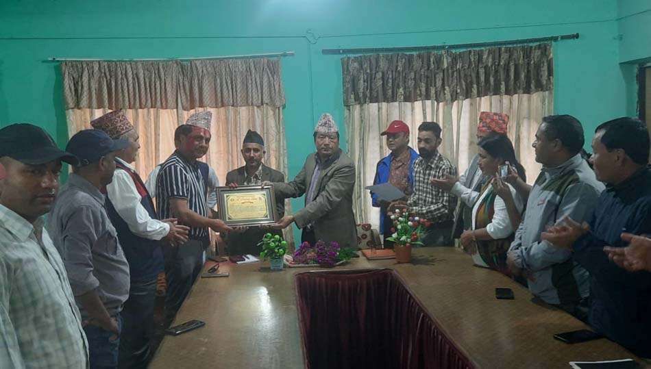 जिल्ला समन्वय समितिको सभाहलमा शुक्रबार आयोजित कार्यक्रममा जिल्ला समन्वय समितिका प्रमुख सनबहादुर राई, दिक्तेल रुपाकोट मझुवागढी नगरपालिकाका नगर प्रमुख तीर्थराज भट्टराई लगायतले टोपी र फूलमाला लगाइदिएर सम्मानपत्र प्रदान गर्नुभएको छ । जिल्लामा महत्वका आयोजनाको निर्माणमा चरम ढिलासुस्ती भइरहेका बेला समयभन्दा अगाडि नै पुल निर्माण गरेकोमा जिल्ला समन्वय समिति, दिक्तेल रुपाकोट मझुवागढी नगरपालिकाले निर्माण व्यवसायीलाई बोलाएर सम्मान गरेको हो ।