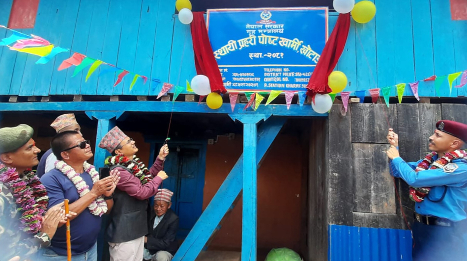 खोटाङ, ११ साउन । दिक्तेल रुपाकोट मझुवागढी नगरपालिका–११ खार्मीमा अस्थायी प्रहरी चौकी स्थापना गरिएको छ । खार्मीसँगै वडा नं. १० पाथेकाबासीका लागिसमेत शान्तिसुरक्षा प्रदान गर्न तथा ग्रामीण क्षेत्रमा हुन सक्ने आपराधिक क्रियाकलाप न्यूनीकरण गर्न खार्मीको खानीडाँडामा अस्थायी प्रहरी चौकी स्थापना गरिएको हो ।