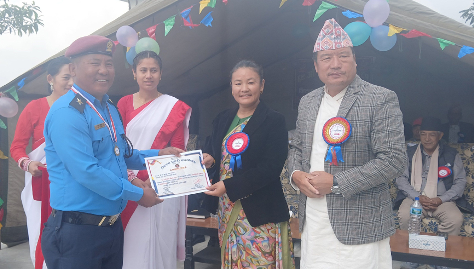 प्रहरी दिवसको अवसरमा आयोजित ब्याडमिन्टन र टेबलटेनिस प्रतियोगिताका विजयी प्रहरी खेलाडीलाई पुरस्कार वितरण गरिएको छ । युगल ब्याडमिन्टन प्रतियोगितामा प्रहरी सहायक निरीक्षक हरिबहादुर लामा र हवल्दार टेकबहादुर राईको जोडी प्रथम, प्रहरी जवान प्रमोद भुजेल र हीरा नेपालीको जोडी द्धितीय तथा सहायक हवल्दार सुमन राई र प्रहरी जवान रेवती दाहालको जोडी तृतीय भएका छन् ।