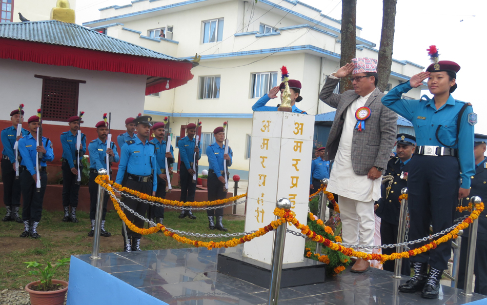 खोटाङ, ३० असोज । समाजमा हुने आपराधिक घटना न्यूनीकरणमा प्रहरीले खेलेको भूमि प्रशंसनीय रहेको ६९ औँ प्रहरी दिवसमा आयोजित कार्यक्रमका वक्ताहरुले बताएका छन् । जिल्ला प्रहरी कार्यालय खोटाङले बुधबार आयोजना गरेको दिवसमा जिल्ला समन्वय समिति खोटाङका प्रमुख सनबहादुर राई, हलेसी तुवाचुङ नगरपालिकाका नगरप्रमुख विमला राई, रावाबेँसी गाउँपालिकाका प्रमुख फटिककुमार श्रेष्ठ, निमित्त प्रमुख जिल्ला अधिकारी हीराधन राई लगायतका वक्ताहरुले जिल्लावासीको शान्तिसुरक्षा तथा अमनचयन कायमका लागि प्रहरीले गरेका कार्यसम्पादनको खुलेर प्रशंसा गर्नुभएको हो ।