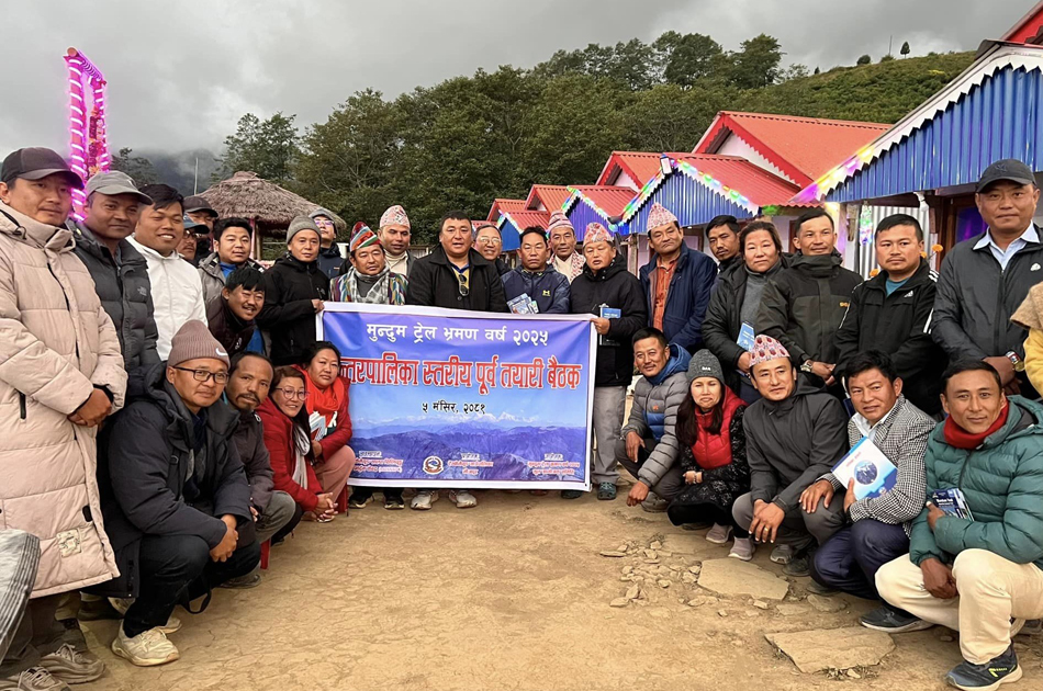 ‘मुन्दुम ट्रेल’को स्तरोन्नति तथा पर्यटन प्रवद्धन गर्न आयोजना गरिएको ‘मुन्दुम ट्रेल भ्रमण वर्ष–२०२५’मा आन्तरिक तथा बाह्यगरी करिब एक लाख पर्यटक भित्र्याउने लक्ष्य राखिएको आयोजक मैयुङ–टेम्क–साल्पा–सिलिचुङ पर्यटन प्रवद्र्धन केन्द्रका अध्यक्ष रमेश राईले जानकारी दिनुभयो । “मुन्दुम ट्रेल पर्यटकका लागि भर्जिन गन्तव्य भएकाले कम्तिमा पनि एक लाख पर्यटक भित्र्याउने लक्ष्य राखिएको । यसका लागि आन्तरिक तयारीलाई तीव्रता दिएका छौँ”, उहाँले भन्नुभयो, “मैयुङ–टेम्के–साल्पा–सिलिचुङ पर्यटन प्रवद्र्धन केन्द्रको संयोजकत्व र ‘मुन्दुम ट्रेल भ्रमण वर्ष–२०२५’ मूल व्यवस्थापन समितिको बैठक बसेर मुन्दुम ट्रेलसँग जोडिएका स्थानीय तहहरूलाई आ–आफ्नो क्षेत्रमा विभिन्न महोत्सव र पर्यटकलाई लक्षित गरेर पर्यटकीय क्रियाकलापहरू आयोजना गर्न लगाउने निर्णयसमेत गरिएको छ । यसले बाह्य पर्यटकका लागि आकर्षित गर्ने अपेक्षा गरेका छौँ ।”