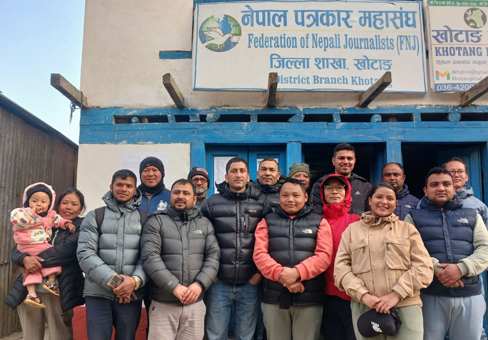 जिल्लामा क्रियाशील तीनवटै सङ्गठनमा आवद्ध पत्रकारहरुलाई समेटेर पत्रकारहरुको साझा संस्था नेपाल पत्रकार महासङ्घ सञ्चालन गर्ने उद्देश्यले सर्वसहमतिमा सबै पदका लागि उम्मेदवारी दर्ता गराएर निर्विरोध निर्वाचित गराइएको प्रेस सेन्टर नेपालका केन्द्रीय सदस्य एवम् खोटाङ जिल्ला इन्चिार्ज डम्बरसिं राईले जानकारी दिनुभयो । “एउटा सङ्गठनले अर्को सङ्गठनलाई निषेध गरेर जाँदा राम्रो देखिँदैन । यो पटक पत्रकार महासङ्घलाई सबैको साझा संस्था बनाउने प्रयास गरेका छौँ”, उहाँले भन्नुभयो, “हाम्रो जिल्लामा पत्रकारहरुको तीनवटा जनवर्गीय सङ्गठन क्रियाशील छन् । प्रेस चौतारी नेपाल खोटाङलाई अध्यक्ष, सहसचिव र एक सदस्य, नेपाल प्रेस युनियन खोटाङलाई वरिष्ठ उपाध्यक्ष, सचिव, सहसचिव र तीन सदस्य तथा प्रेस सेन्टर नेपाल खोटाङलाई महिला उपाध्यक्ष र कोषाध्यक्ष दिएर मिलाएका छौँ । यसले राम्रो सन्देश दिएको छ ।”