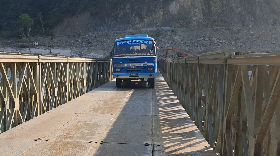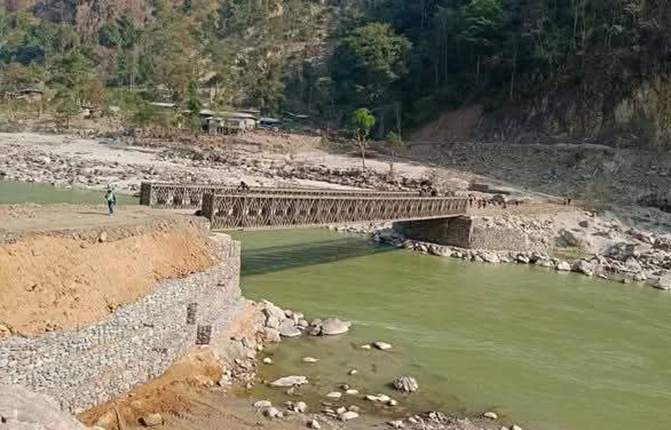 खोटाङ, २७ पुस । सगरमाथा लोकमार्ग अन्तरगत दिक्तेल–गाईघाट सडकखण्डमा पर्ने सुनकोशी नदीस्थित फोक्सिङटारमा जडान गरिएको अस्थायी बेलिब्रिज सञ्चालनमा आएको छ । गत असोज–१२ गते आएको भीषण बाढीले मोटरेबल पक्की पुल बगाएपछि त्यसको वैकल्पिक व्यवस्थापन गर्न अस्थायी बेलिब्रिज जडान गरिएको हो ।