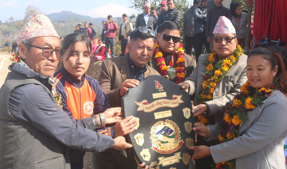 राष्ट्रपति रनिङ शिल्ड प्रतियोगिताका उपाधि विजेता विद्यालयले रनिङ शिल्ड, मेडल र प्रमाणपत्र तथा अन्य विद्यालयले ट्रफी, मेडल र प्रमाणपत्र प्राप्त गरेका छन् । खेलकुद प्रतियोगिता समापनसँगै साँस्कृति कार्यक्रमसमेत आयोजना गरिएको कार्यक्रममा उपाधि विजेता विद्यालय तथा विद्यार्थीलाई नगरप्रमुख विमला राई र उपप्रमुख रमेश राउतले पुरस्कार वितरण गर्नुभएको छ ।