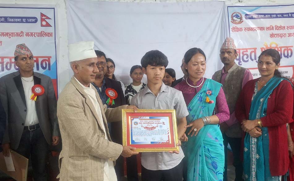 खोटाङ, २१ असार । दिक्तेल रुपाकोट मझुवागढी नगरपालिकाले माध्यमिक शिक्षा परीक्षा (एसइई)मा सामुदायिक विद्यालयबाट उत्कृष्ट अङ्क ल्याएर नगर प्रथम हुने विद्यार्थी र विद्यालयलाई नगदसहित सम्मान गरेको छ । सामुदायिक विद्यालयको शैक्षिक गुणस्तर सुधार अभियानमा लागेको नगरपालिकाले शनिबार दिक्तेलमा आयोजना गरिएको शिक्षा सम्मेलन समापनको अवसर पारेर विद्यार्थी र विद्यालयलाई नगदसहित सम्मान गरेको हो ।