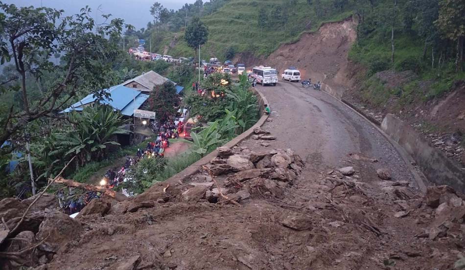 च्यास्मिटारस्थित प्रहरी चौकी नजिकैको सडकभन्दा करिब १०० मिटरमाथिबाट ठूलो ढुङ्गा तथा बोटबिरुवासहितको पहिरो झर्दा मध्यपहाडी लोकमार्गअन्तरगत जयराम–हलेसी सडकखण्ड दिनभर पूर्णरुपमा अवरुद्ध भएको थियो । पहिरोका कारण सडक अवरुद्ध भएपछि काठमाडौँ तथा तराई जाने÷आउने सयौँ यातायातका साधन तथा हजारौँ यात्रुहरु बीच सडकमै अलपत्र परेका थिए ।