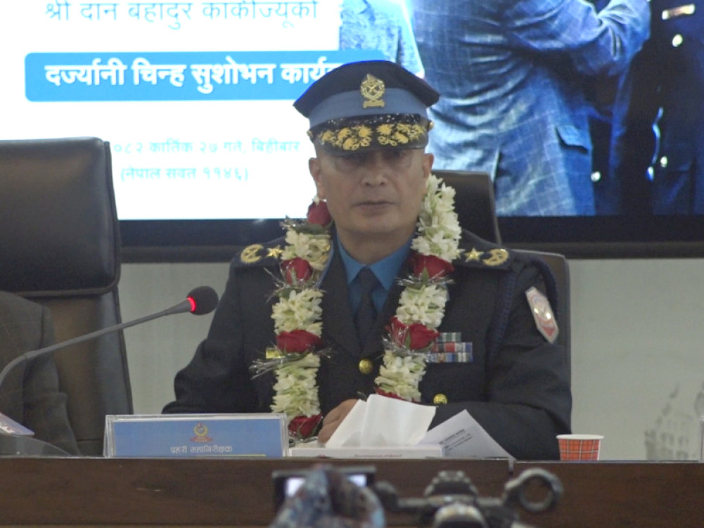 कार्तिक २७ गते, । नवनियुक्त प्रहरी महानिरीक्षक (आईजीपी) दानबहादुर कार्कीले देशमा सुशासन कायम गर्दै आसन्न निर्वाचन सफलतापूर्वक सम्पन्न गराउने सरकारको अभिभारा पूरा गर्न प्रतिबद्ध रहेको जनाउनुभएको छ । बिहीबार प्रहरी महानिरीक्षकको दर्ज्यानी चिन्ह लगाएपछि सिंहदरबारमा आफ्ना भनाइ राख्दै उहाँले आसन्न निर्वाचन सफलतापूर्वक सम्पन्न गराउनु आफ्नो प्रमुख ध्येय रहने बताउनुभएको हो ।
