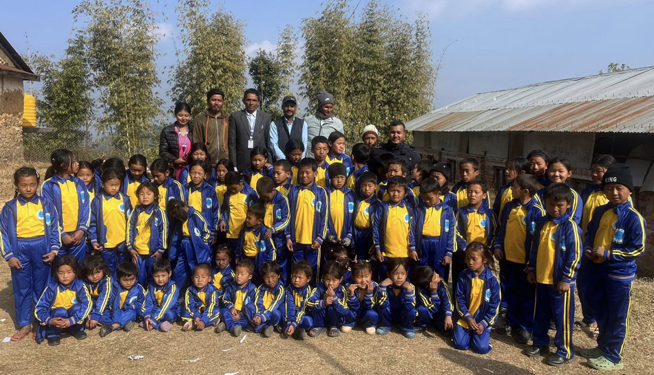 खोटाङ, १३ माघ । जन्तेढुङ्गा गाउँपालिका–६ दिप्लुङका अधिवक्ता चण्डीराज राईले तीनवटा सामुदायिक विद्यालयका ९४ जना विद्यार्थीलाई न्यानो कपडा (ट्र्याक सुट) उपलब्ध गराउनुभएको छ । दिप्लुङस्थित छुप्लुङमा जन्मिएर हाल बेलायत (युके)मा कानून व्यवसाय गर्दै आउनुभएका अधिवक्ता राईले स्वर्गीय आमा आनन्दीमायाँ राईको स्मृतिमा आफ्नो गाउँमा सञ्चालित तीनवटा सामुदायिक विद्यालयमा अध्ययतरत विद्यार्थीलाई न्यानो कपडा उपलब्ध गराउनुभएको हो ।