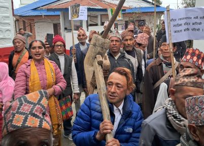 खोटाङ १६ चैत । बाँदरको समस्य हल गर्न माग गर्दै जिल्लाका किसानले कृषि औजारसहित दिक्तेल बजारमा बिरोध र्याली प्रदर्शन गरेका छन् । बाँदरपीडित किसानले बाँदर नियन्त्रणको भरपर्दो उपाय खोजी गर्न नेपाल सरकारसमक्ष माग गर्दै हलो, जुवा, दाँते र कोदालोसहित आज (स...