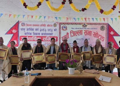 खोटाङ,१६ फागुन। दशवटा स्थानीय तह रहेको खोटाङमा आठ वटा स्थानीय तहले राष्ट्रपति रनिङ शिल्ड प्रतियोगिता सञ्चालन गर्दा रावाबेँसी गाउँपालिका र जन्तेढुंगा गाउँपालिकाले विभिन्न कारण देखाउँदै प्रतियोगिता सञ्च...
